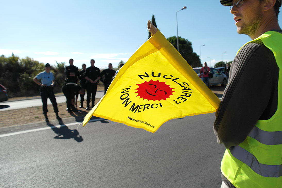 60 tonnes de matériaux radioactifs qui empruntent chaque jour l'A9 passant par Montpellier avant de rejoindre l'A7 et l'usine de Pierrelatte sur le site du Tricastin. Aucune sécurité particulière pour ces transports qui passent près d'agglomérations et stationnent sur les aires d'autoroute, côtoyant des milliers d'usager de la route chaque jour. Contrairement aux mensonges de l'industrie de l'atome, les chargements d'UF 4 sont irradiants et les rayonnements gamma émis sont importants. L'accident n'est jamais exclu. Et pourtant aucune information n'est mise à disposition du public tant sur la dangerosité de ces convois, que sur les dispositions qui seraient prises en cas d'accident.