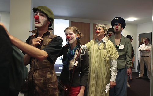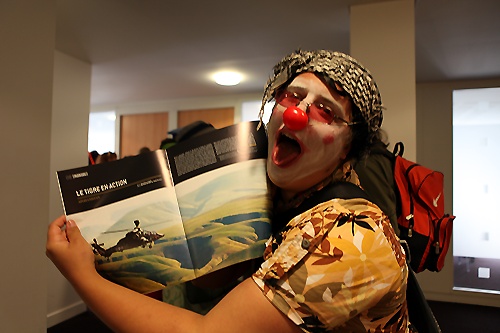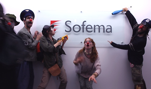 Une vingtaine de clowns, accompagnés d'autres militants, ont envahi le magasin dans la bonne humeur.