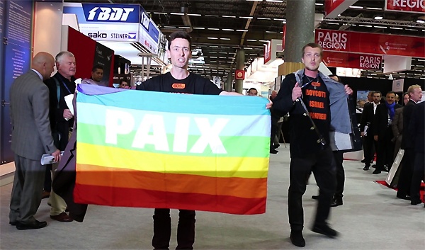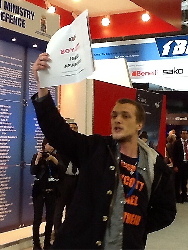 Les militants ont notamment protesté contre la présence d’Israël à ce salon, rappelant les crimes de guerre commis par ce pays ces dernières années, notamment le bombardement de Gaza lors de l’opération « Plomb durci » en 2008. L’attaque israélienne avait alors fait plus de 1300 victimes pour la plupart civiles, dont de nombreux enfants. Les conséquences sanitaires se font encore sentir aujourd’hui à Gaza, notamment du fait de l’utilisation de bombes à uranium appauvri. Les criminels de guerre responsables de cette attaque n'ont toujours pas été jugés!