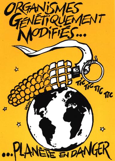 Aujourd'hui, 80% des français se déclarent hostiles à la consommation d'OGM, mais 80% des animaux d'élevage sont nourris aux OGM. Donc en consommant les produits issus de cet élevage (lait, viande, œufs …) les Français consomment, sans le vouloir, ni le savoir des OGM. Bien malgré lui, le consommateur confie l'avenir biologique de la planète, comme le souligne le scientifique Jean-Pierre BERLAN, à des " fabricants de pesticides, herbicides, fongicides, insecticides c'est-à-dire à des gens (Monsanto, Bayer …) qui sont les ennemis les plus déterminés de tout ce qui est vivant. "