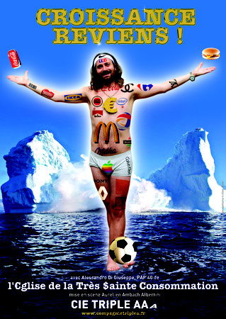 Croissance Reviens ! est un « One-M€$$€-Show » mêlant théâtre participatif et humour corrosif. Oscillant entre le show et la messe, le PAP’40 de l’Eglise de la Très Sainte Consommation accompagné du Cardinal Triple A, envoûte l’audience pour célébrer le Dieu Argent avec des prières et des chants, faire revenir la croissance, exorciser les vilains écolos et sauver les riches.